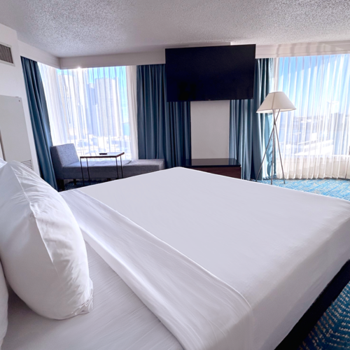 If you’re looking for a historic yet modern downtown Detroit hotel, the award-winning Fort Pontchartrain a Wyndham Hotel puts you in the heart of it all. Located in the Financial District, just off the M-10 Lodge Freeway, the Fort Pontchartrain a Wyndham Hotel is within walking distance of Huntington place, and the Riverfront.